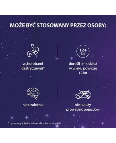 Ten lek należy zawsze stosować dokładnie tak, jak to opisano w ulotce dla pacjenta lub według zaleceń lekarza lub farmaceuty. W razie wątpliwości należy zwrócić się do lekarza lub farmaceuty. Stosować wyłącznie przed snem.