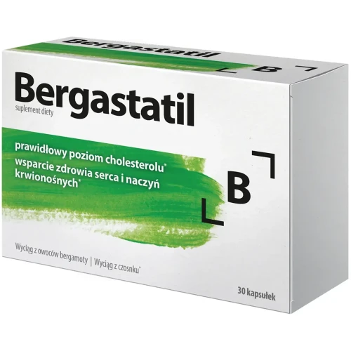 Bergastatil to suplement diety w kapsułkach przeznaczony dla osób dorosłych. Preparat łączący działanie owoców bergamoty i czosnku.