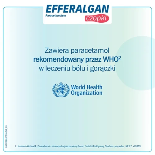 Efferalgan, czopki doodbytnicze to produkt leczniczy o działaniu przeciwbólowym i przeciwgorączkowym. Obniża podwyższoną temperaturę ciała występującą w czasie choroby, nie obniża temperatury prawidłowej. Przeznaczony dla dzieci o masie ciała od 10 kg do 15 kg (w wieku około 24 miesięcy do 3. roku życia).