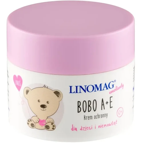 Linomag Bobo A+E krem ochronny dla dzieci i niemowląt od 1 dnia życia. Krem z olejem lnianym, witaminami i lanoliną pielęgnuje i chroni wrażliwą skórę.