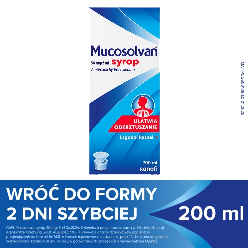 Mucosolvan to produkt leczniczy w syropie z chlorowodorkiem ambroksolu. Substancja czynna leku zwiększa wydzielanie śluzu w drogach oddechowych, co ułatwia odkrztuszanie i łagodzi kaszel. Preparat dla dorosłych i dzieci powyżej 1. roku życia.