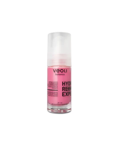Produkt kosmetyczny Veoli Botanica Hydra Recovery Expert Serum z kompleksem kwasów hialuronowych 15%, trehalozą 3%, kompleksem ceramidów 2% i witaminą B12.